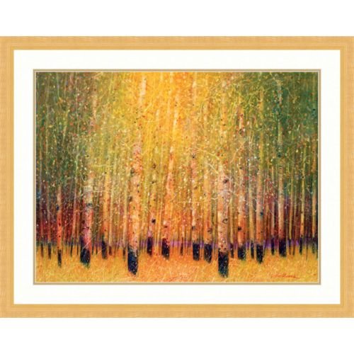 What a wonderfully evocative depiction of an aspen forest!???¨?« In "Aspen Glow", Collins has injected an everyday scene with vitality and luminosity.???¨?« A late evening sun, just visible through the treetops, warms the scene and appears to ignite the central foliage, yet the surrounding leaves remain fresh and green. Fall is coming!Collins Framed Fine Art Print Aspen Glow Wall Decor Specifications